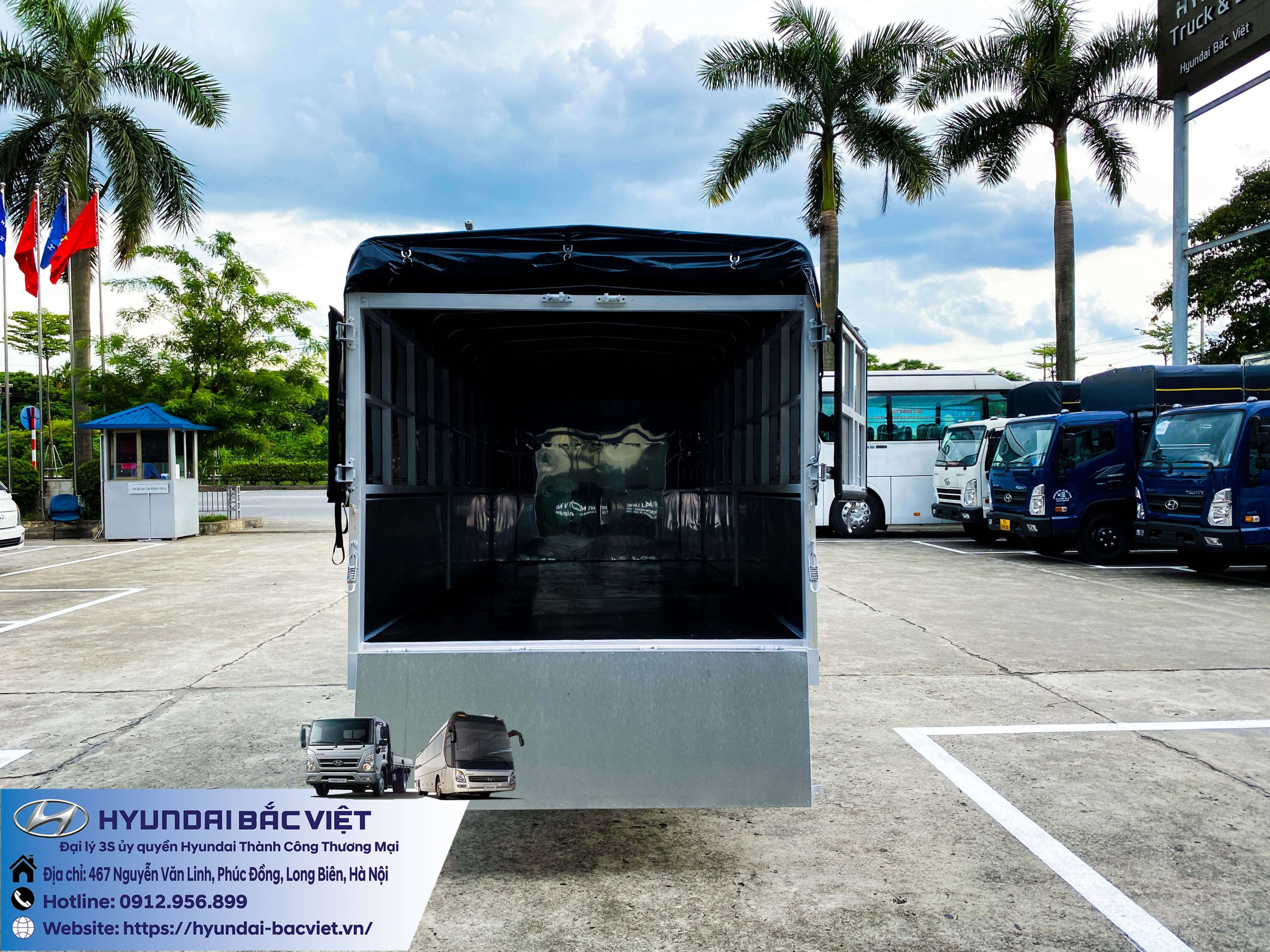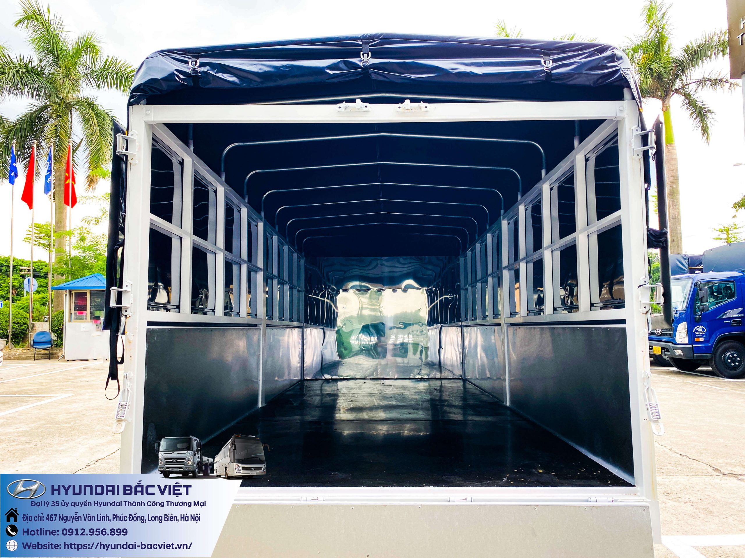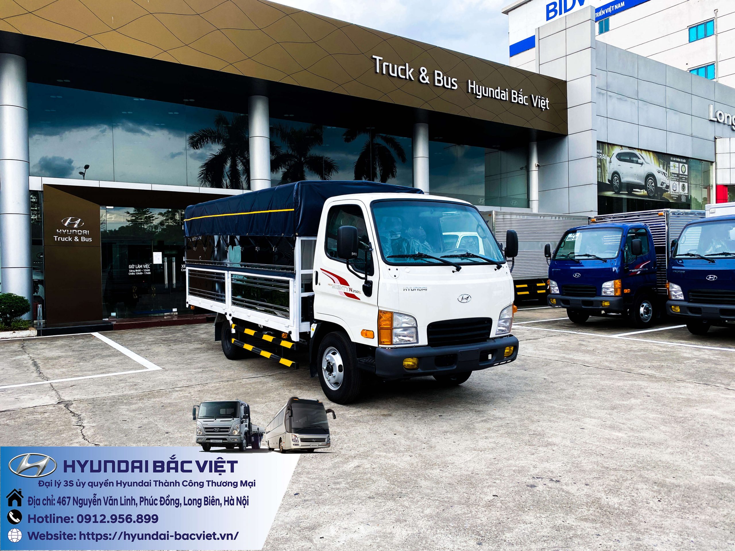 Xe tải Hyundai New Mighty N250SL thùng mui bạt đang được bán tại Hyundai Bắc Việt. Đặc điểm của thùng mui bạt phù hợp với rất nhiều nhu cầu của khách hàng như: Chở cám, lương thực thực phẩm…, những sản phẩm có đặc tính cần độ thoáng cao. Tải trọng của xe lên đến 2 tấn 4. Thùng xe dài hơn 4 mét, rộng gần 2 mét và cao 1.7 mét.